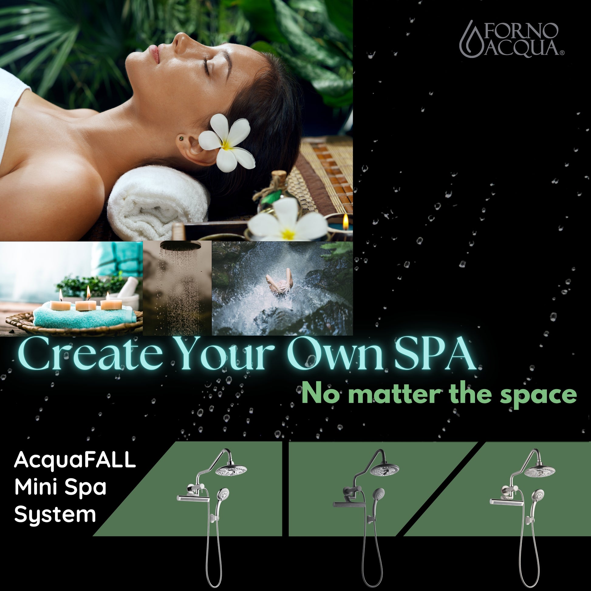 Forno Acqua AcquaFALL Mini 8 Inch Shower Head, Polished Stainless Steel Finish, Overhead Rainfall Shower, Handheld Shower Head, Body Jets, 2.5 GPM Flow Rate