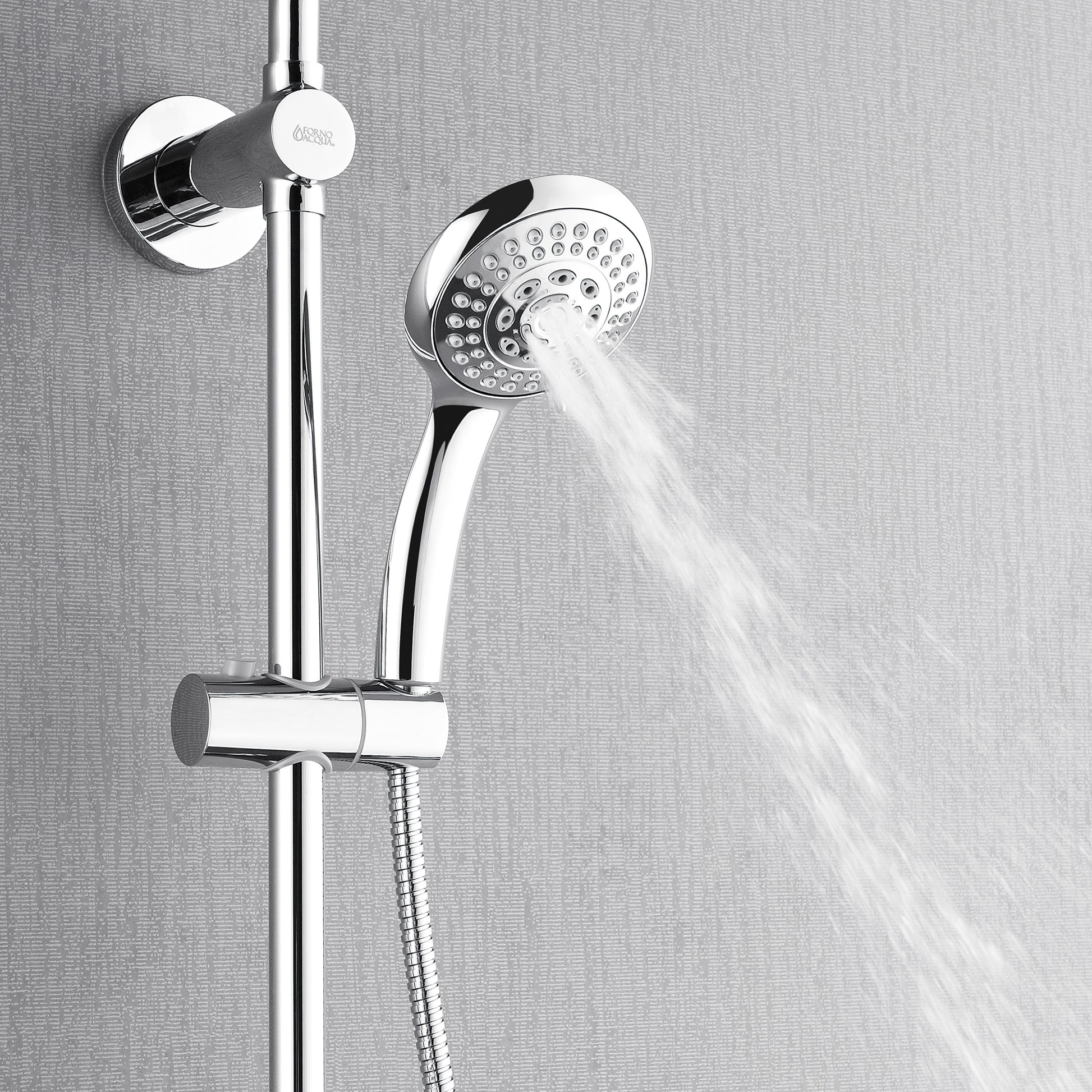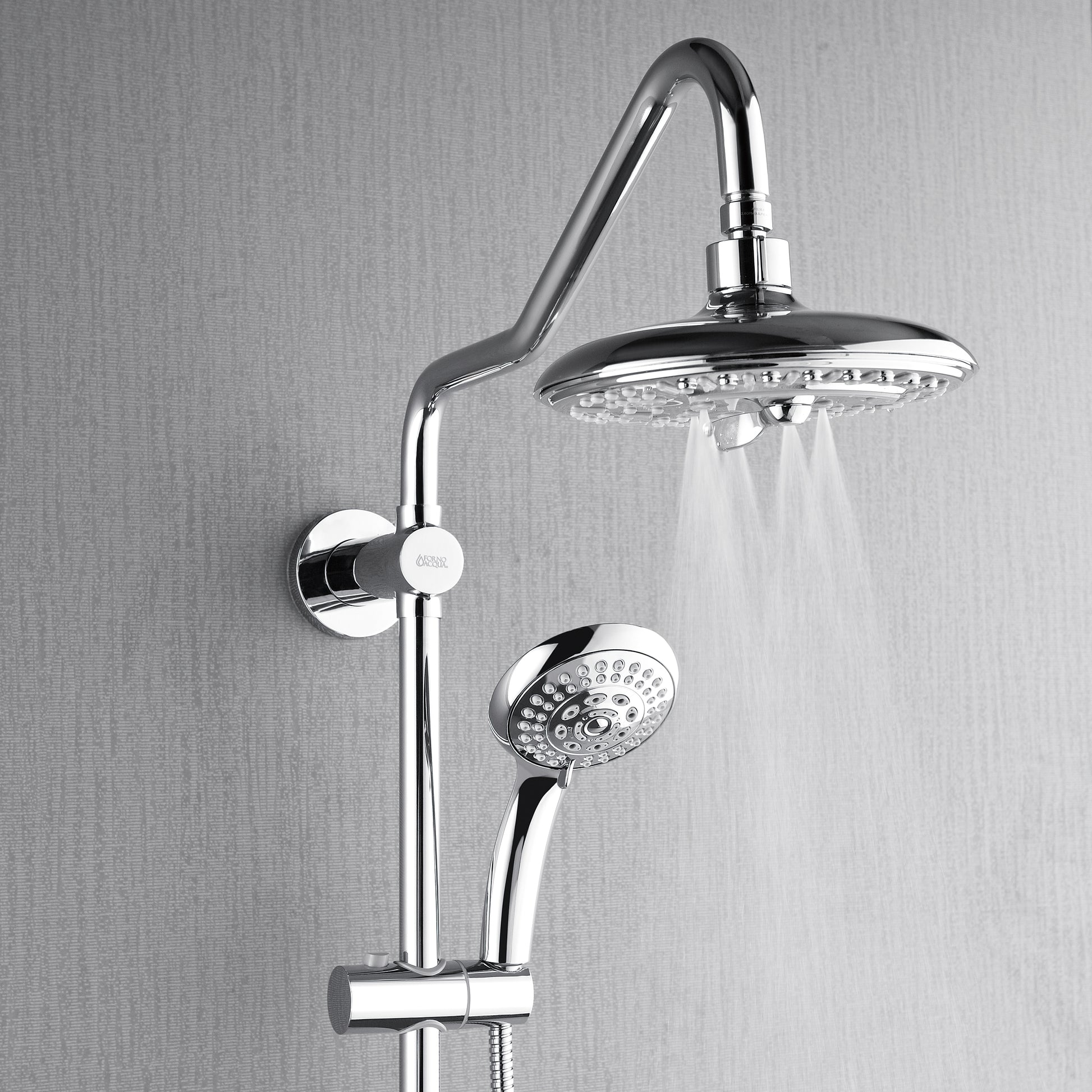 Forno Acqua AcquaSPA Retrofit Shower, Overhead Rainfall, 8 Inch Shower Head, Handheld Shower Head, Body Jets, 6 Way Diverter, Polished Stainless Steel Finish, 1.8 GPM Flow Rate