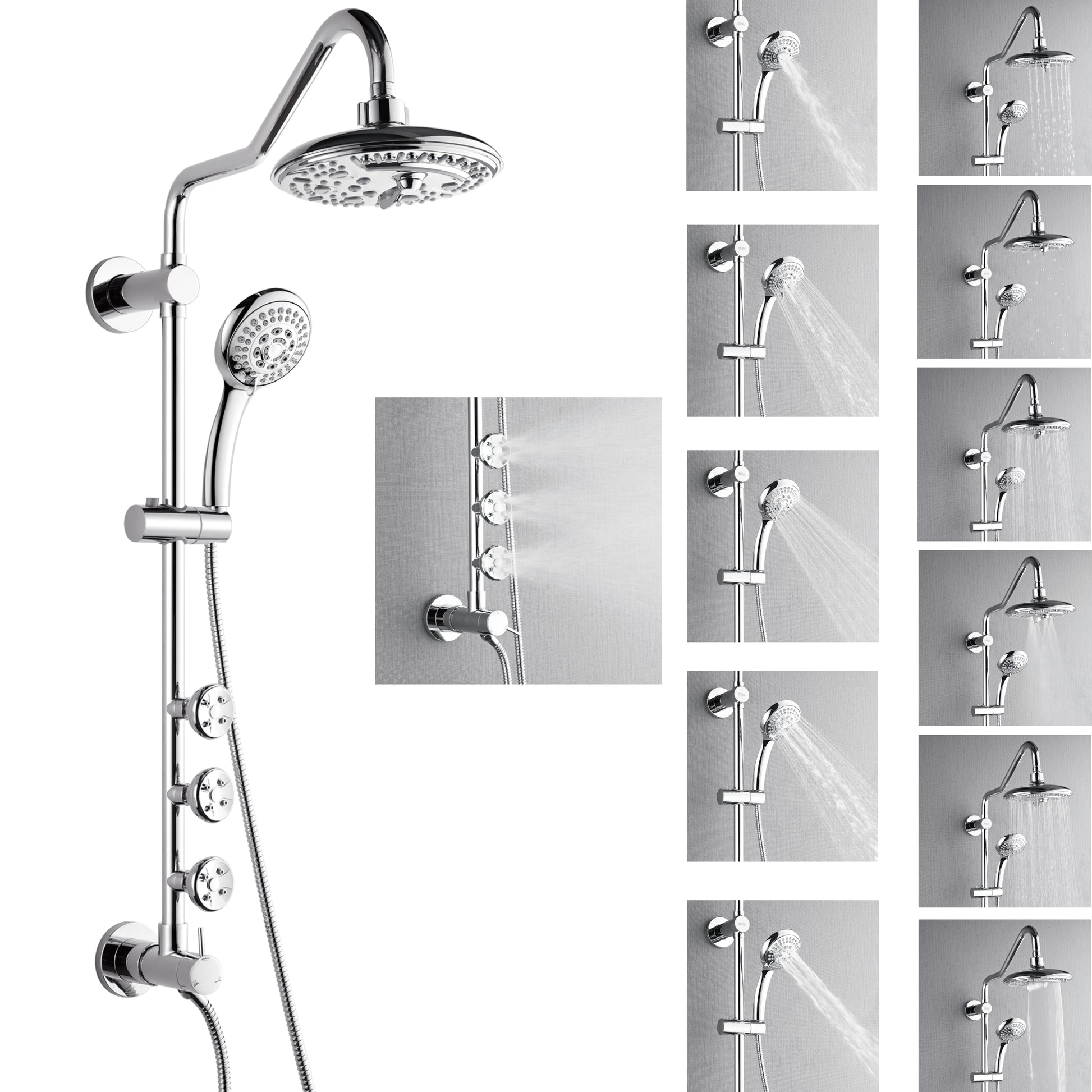 * 6-Way Diverter Offers Full Control of Shower Functions: Switch with ease, rain shower, handheld, or jets. Mix and match for a custom spa feel.