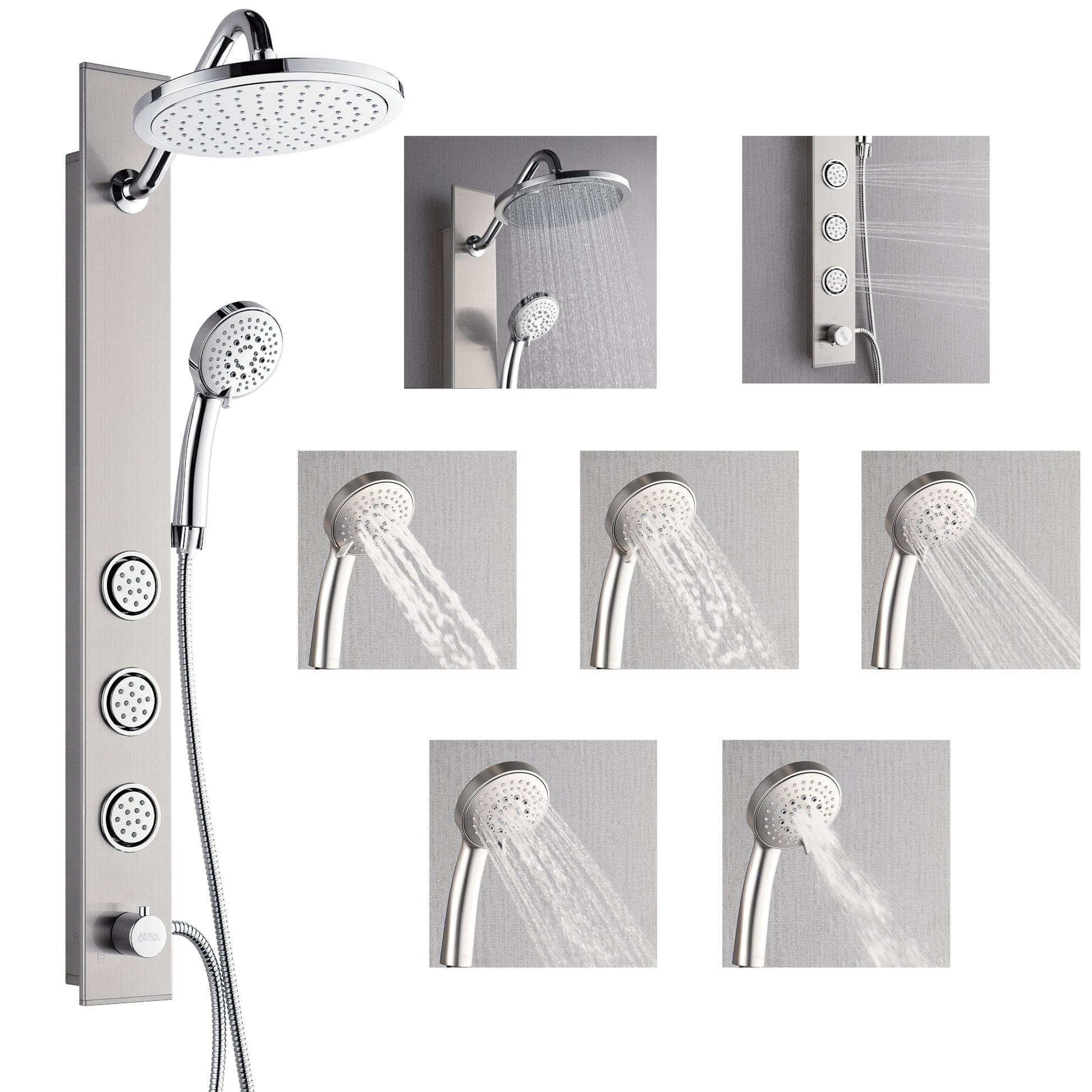 Forno Acqua AcquaSPA Shower Panel in Stainless Steel, Overhead Rainfall Shower, Handheld Shower Head, Body Jets, 6 Way Diverter, 2.5 GPM Flow Rate