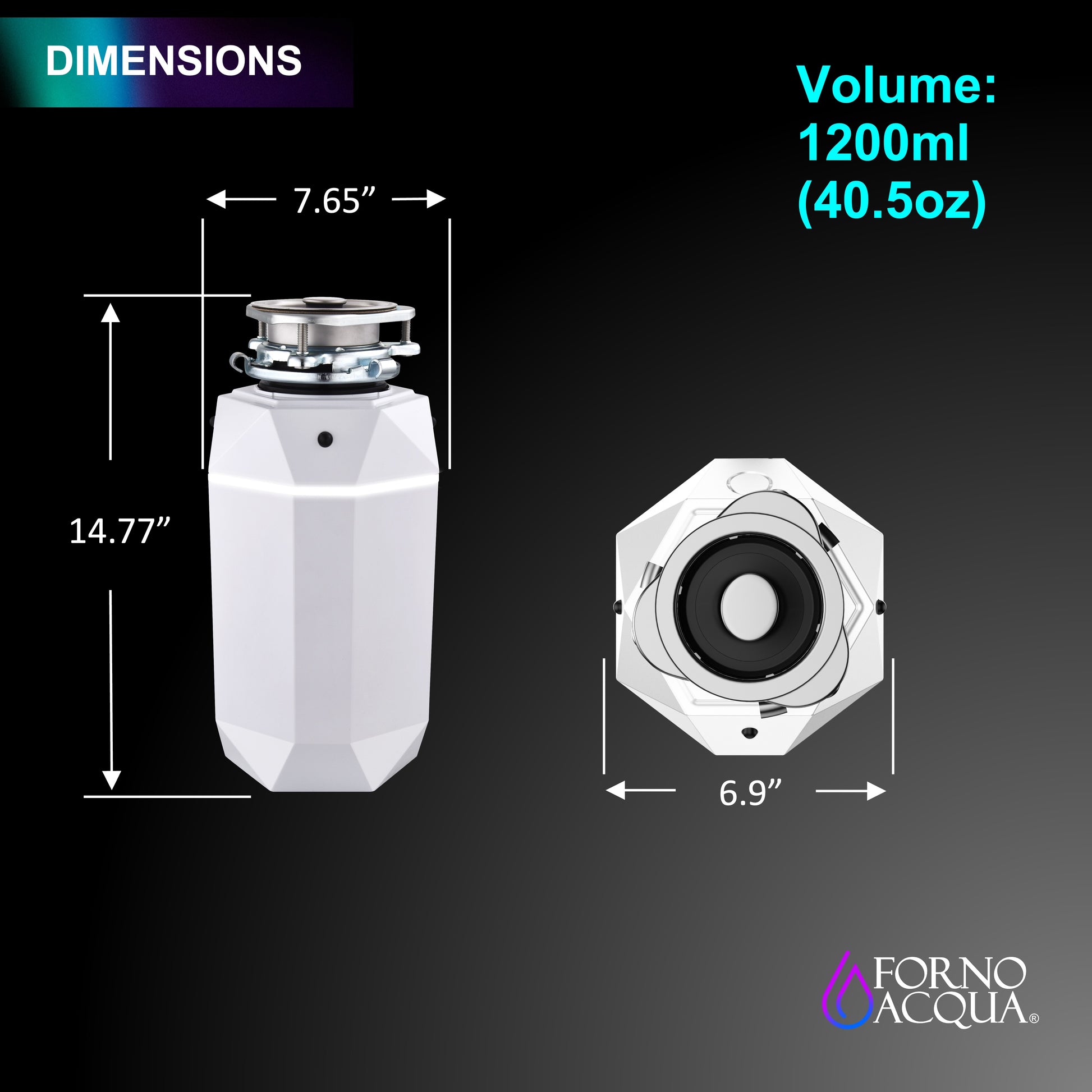 Upgrade your kitchen with the FORNO ACQUA Super Quiet Waste Disposer, a perfect blend of power, elegance, and advanced design. Featuring a permanent magnet motor, it delivers fast, efficient grinding for food waste while operating whisper-quiet for a more peaceful kitchen experience. The innovative BrightDIAMOND 270º Motion-Activated LED Cabinet Light surrounds your cabinet with a stunning 5000K white, combining modern style with practical lighting to perform chores. Thoughtfully designed, it comes with a pre-wired air switch and plug-in cord, making installation a breeze and using it a pleasure. Built for performance and durability, FORNO ACQUA ensures your kitchen stays clean, functional, and sophisticated. Experience cutting-edge technology, premium craftsmanship, and a touch of brilliance. BrightDIAMOND where lighting and innovation meets garbage disposal excellence.