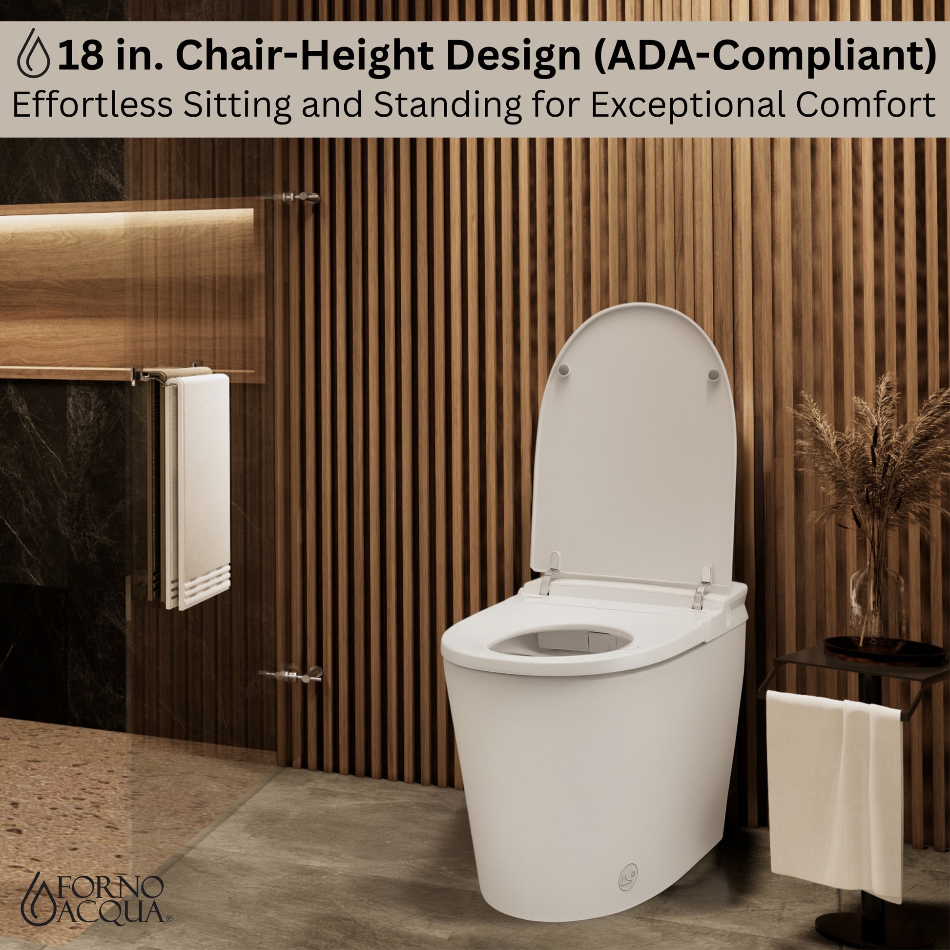 FORNO ACQUA Luxurious Smart Toilet. Includes Auto Flush, Auto Lid, Powerful Flush, sleek tankless design Ideal for Powder Rooms.