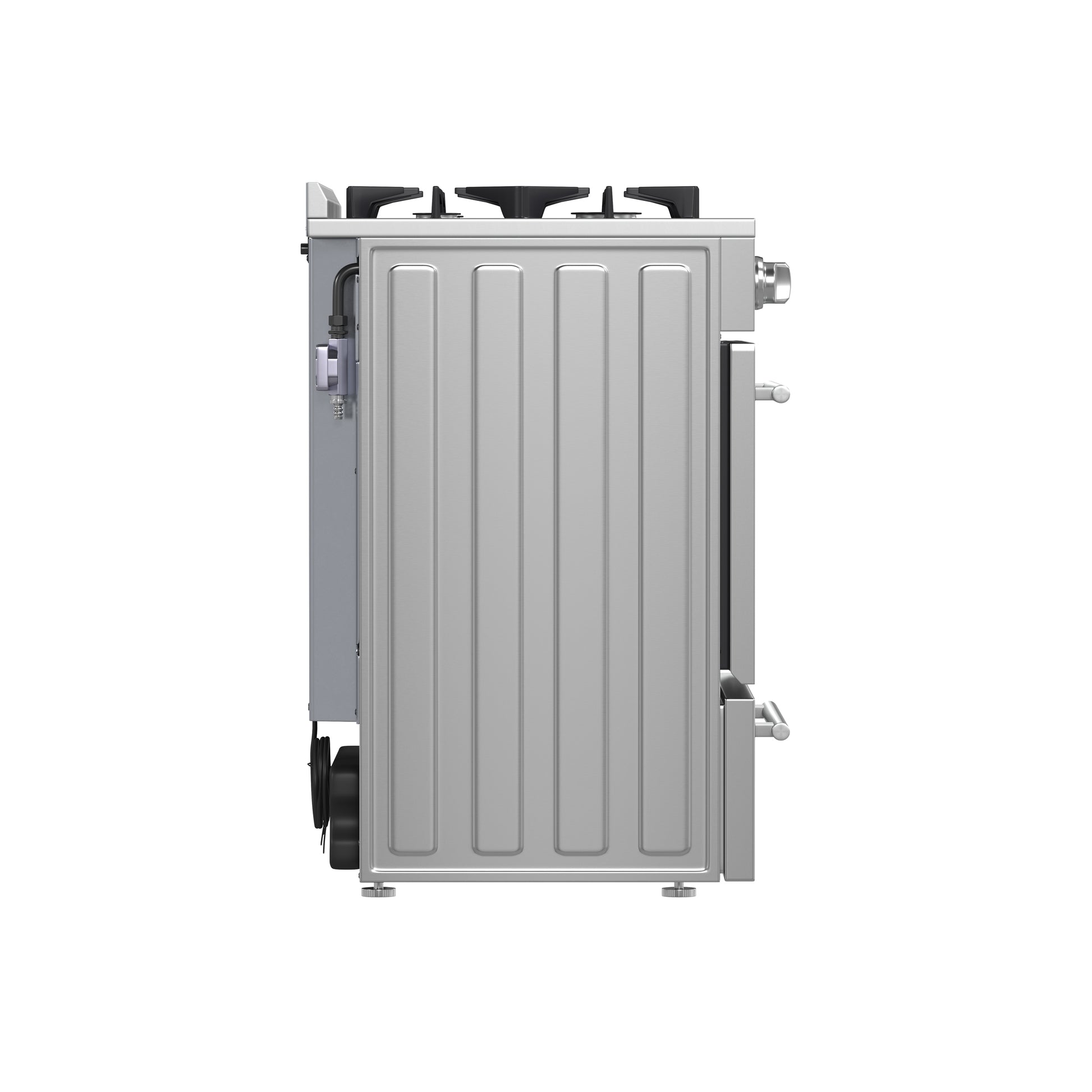 The Forno Breno 24 Inch Alta Qualita Pro-Style Freestanding Gas Range brings professional styling and Performance into your home kitchen with its durable stainless-steel design. Cooking Surface has with 4 sealed burners with a total output of 38,000 BTU and features continuous cast iron grates. The convection oven has a capacity of 2.3 cu. ft. with a combined broil and oven output of 13,000 BTU. Included are 2 electroplated oven racks, LP conversion kit and air-fryer kit. Additionally, zinc coated metal knobs with bezel rings will maintain their beauty for years.