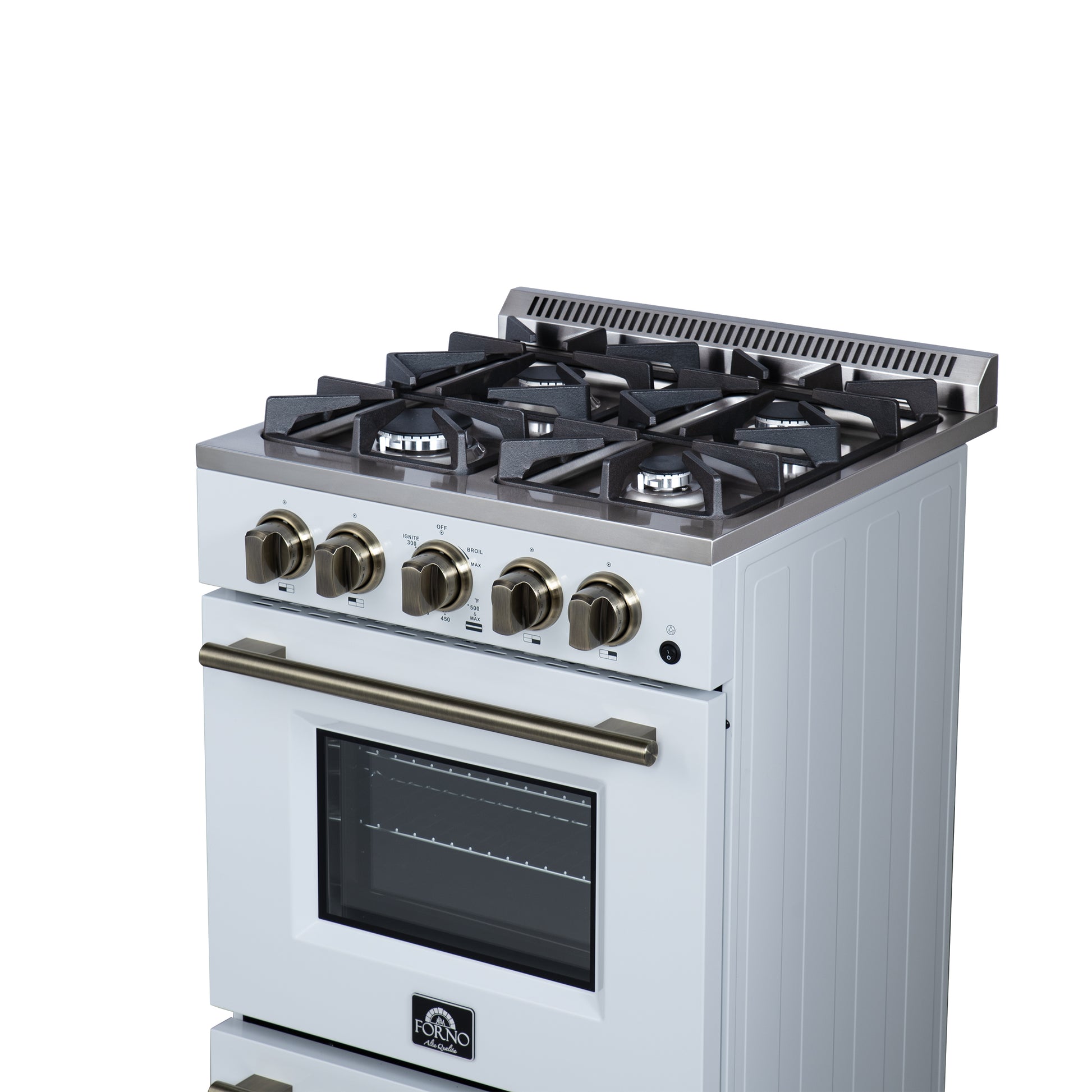 Forno Breno 24 Inch Freestanding Gas Range in White with Antique Brass, Plug Included, Energy Efficient