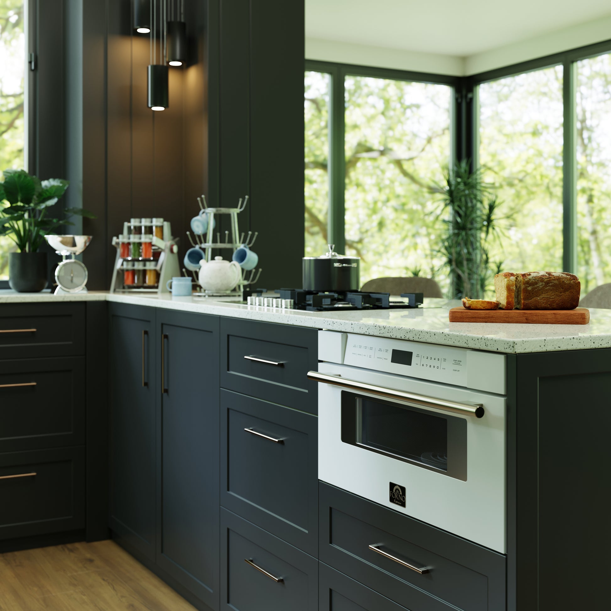Forno Capoliveri Espresso 30-Inch Microwave Drawer, White, 1.2 cu.ft, 1500 Watts, Built-In, Touch Control LCD Display, Auto-Touch Open/Close, 11 Power Levels, Sensor Cooking