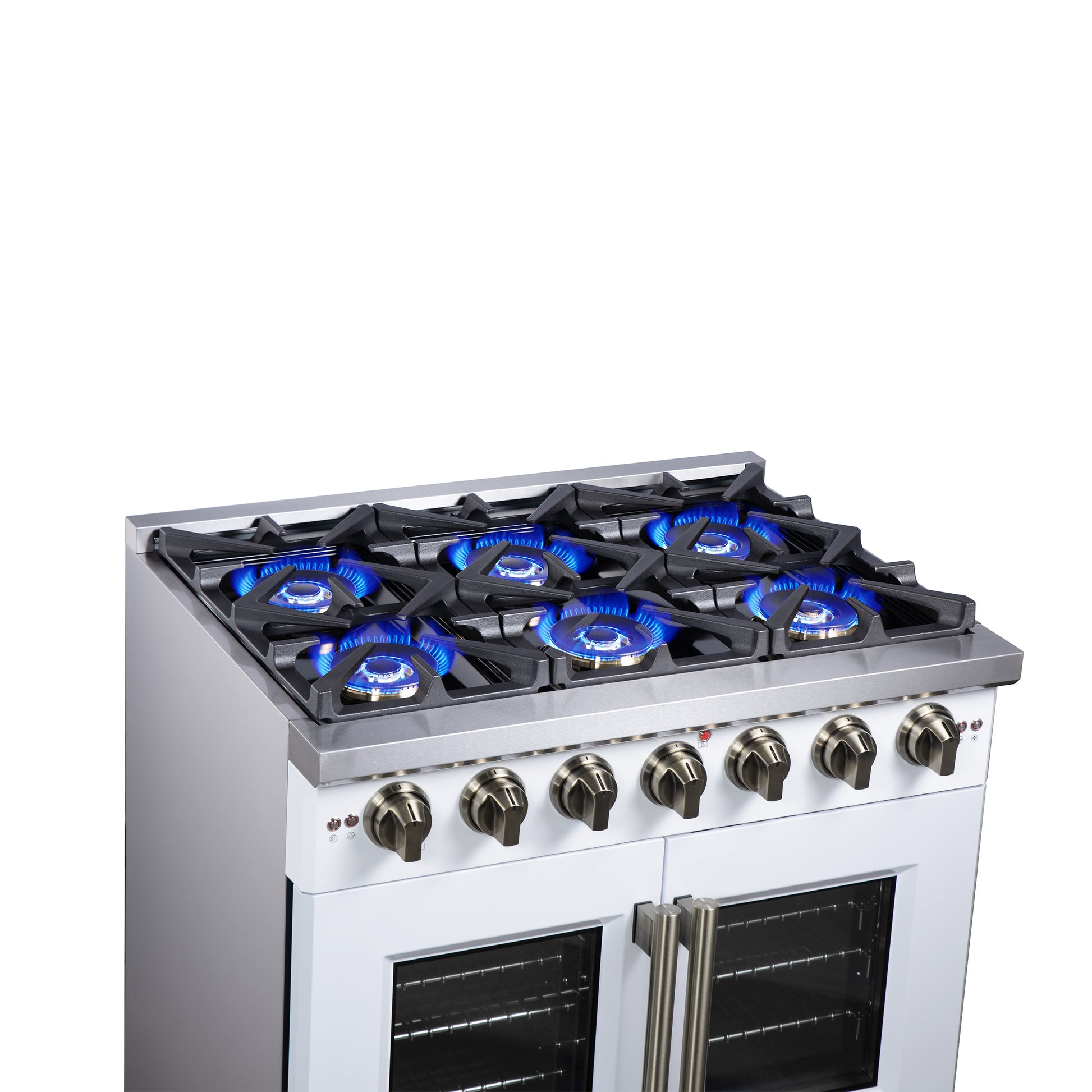 Forno Capriasca 36-Inch White Freestanding French Door Gas Range, 6 Burners, Convection Oven, Energy Efficient