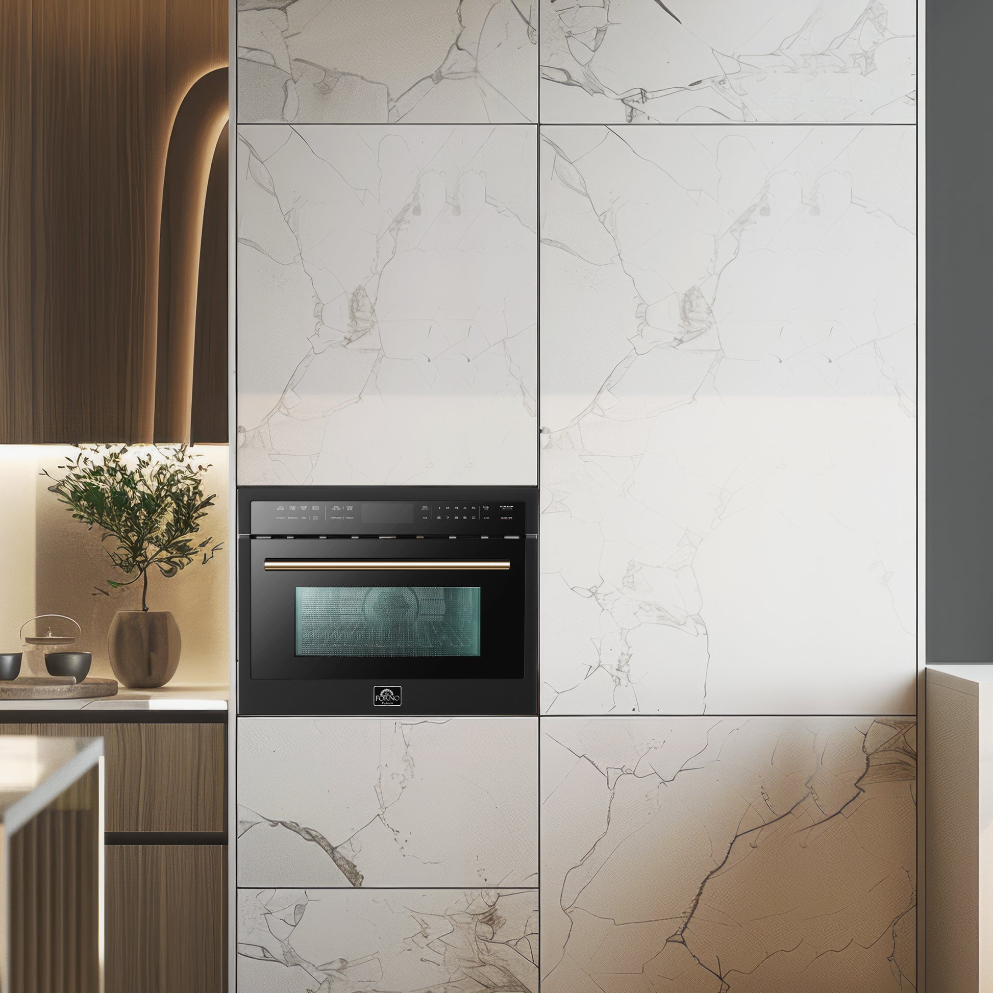 Forno Oliena Espresso Black 24-Inch Built-In Microwave and Convection Oven Combo, 1.6 cu.ft, 1750W Convection, 1000W Microwave, Stainless Steel Interior, Glass Touch Controls, Sensor Cooking