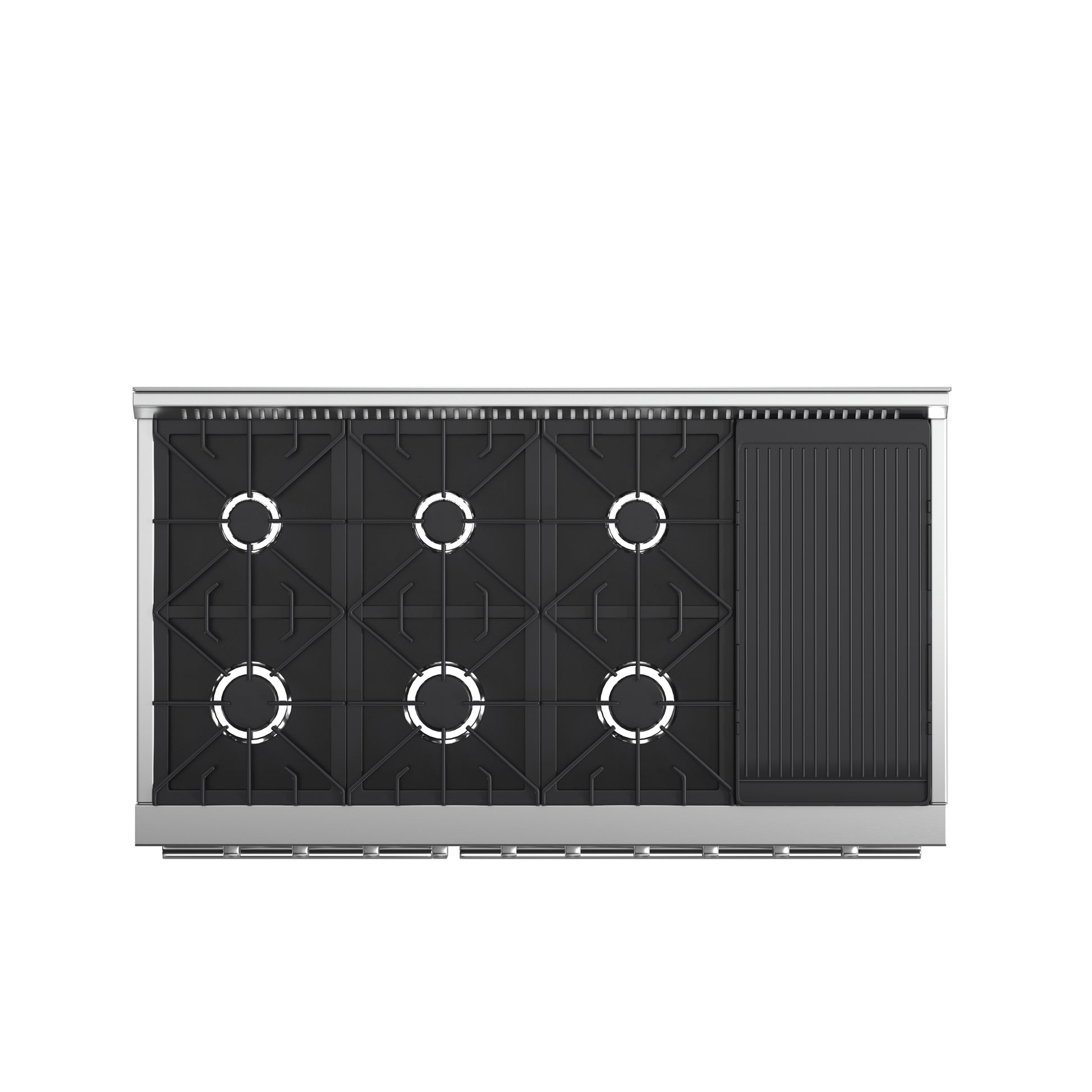* Range: Continuous cast iron grates ensure even heat, providing cookware stability and mobility off the source.